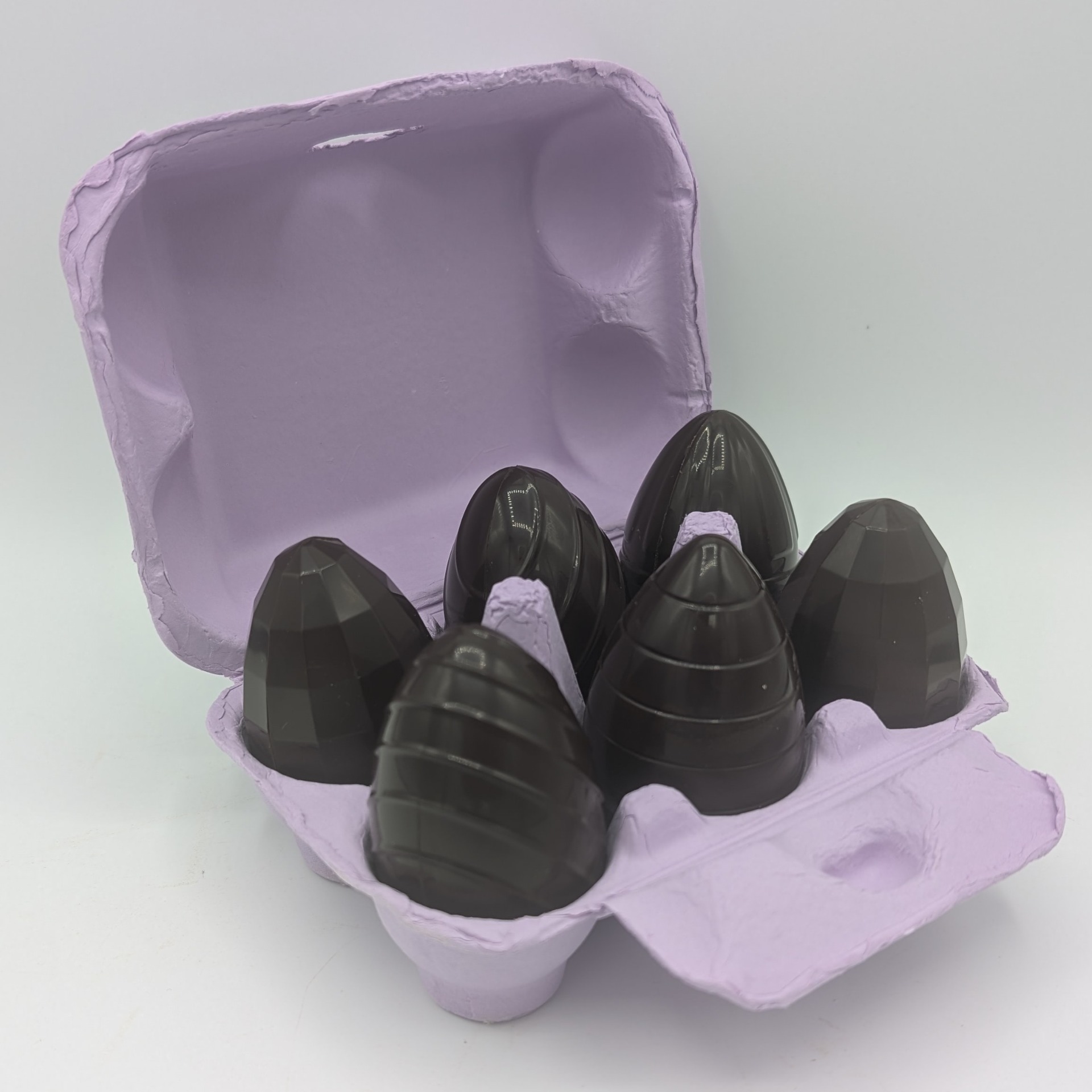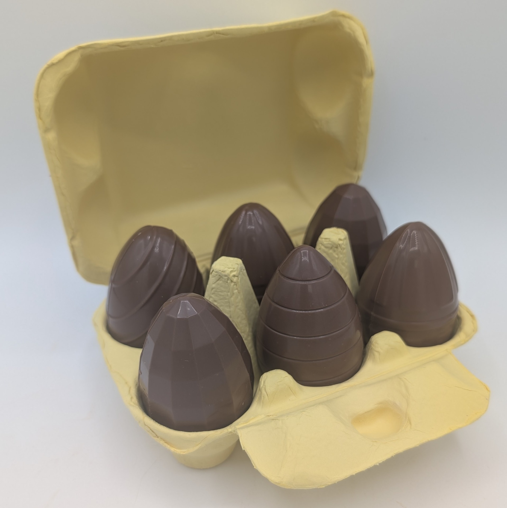 Description : moulage de chocolat brut en forme d'oeuf, vide (quantité 6 oeufs) noir ou lait