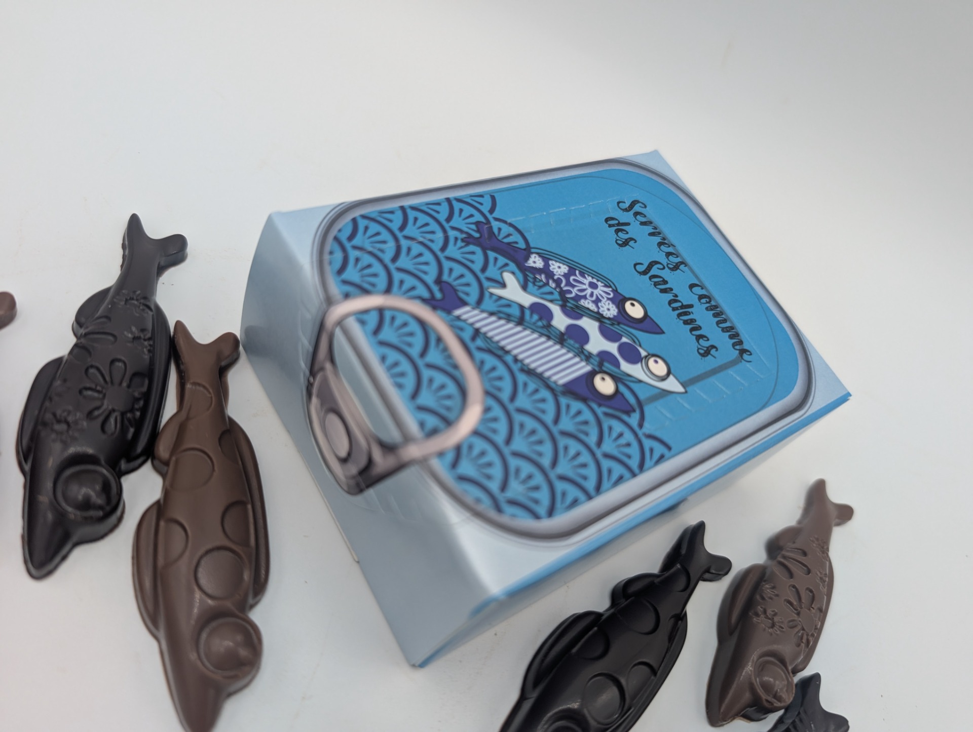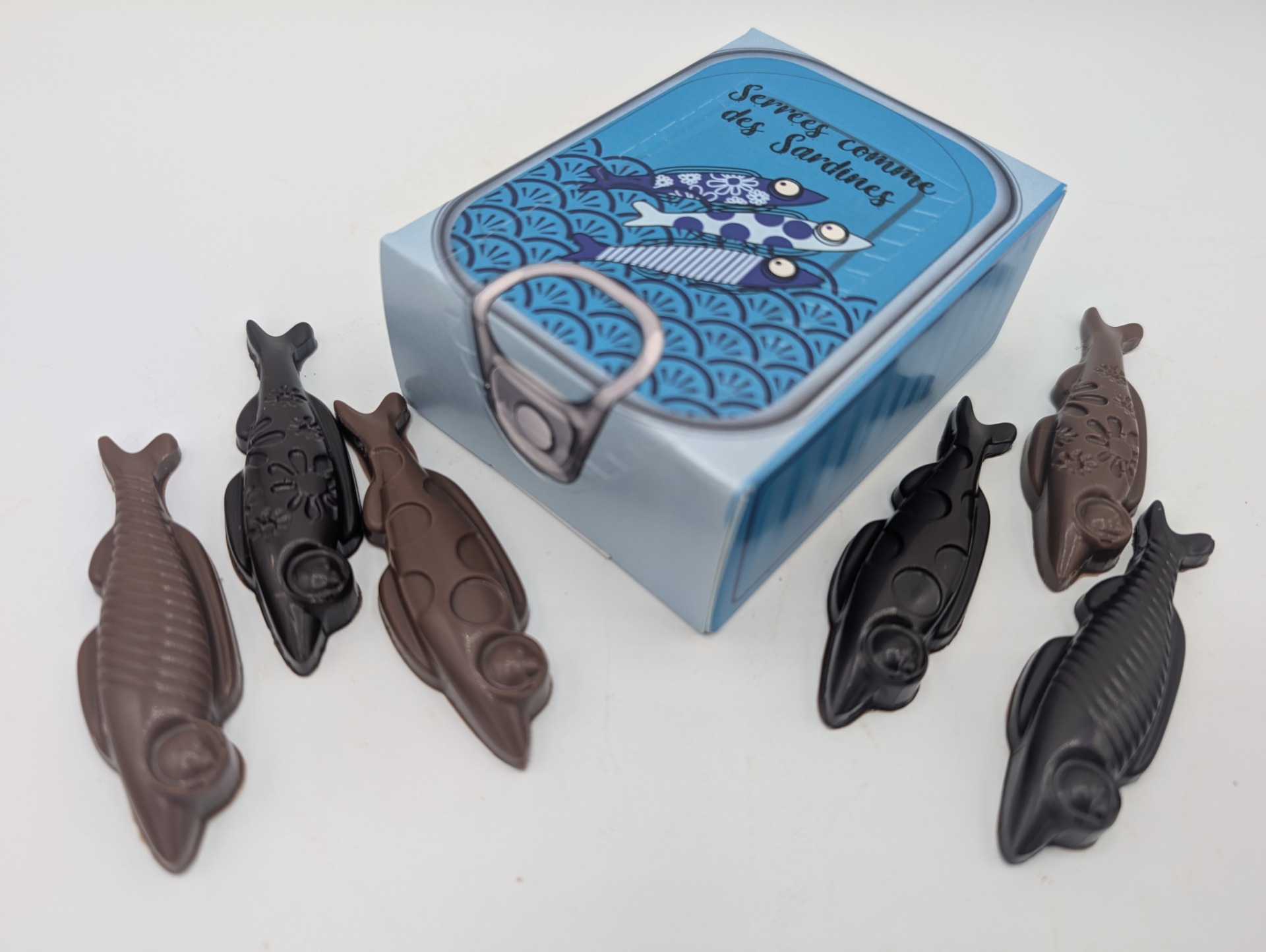 Description : sardines en chocolat (5 noir + 5 lait)